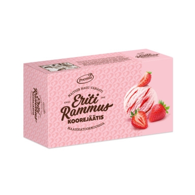 Koostisosad: Maasika-koorejäätis 83% (vesi, RÕÕSK KOOR, suhkur, maasikapüree 10%, LÕSSI- ja VADAKUPULBER, VÕI, emulgaator rasvhapete mono- ja diglütseriidid, stabilisaatorid: jaanileivapuujahu, guarkummi, karrageen; toiduvärv peedipunane, lõhna- ja maitseaine (vanill)), maasikatoormoos 17% (maasikad 50%, suhkur, tsitruskiud, happesuse regulaator sidrunhape).